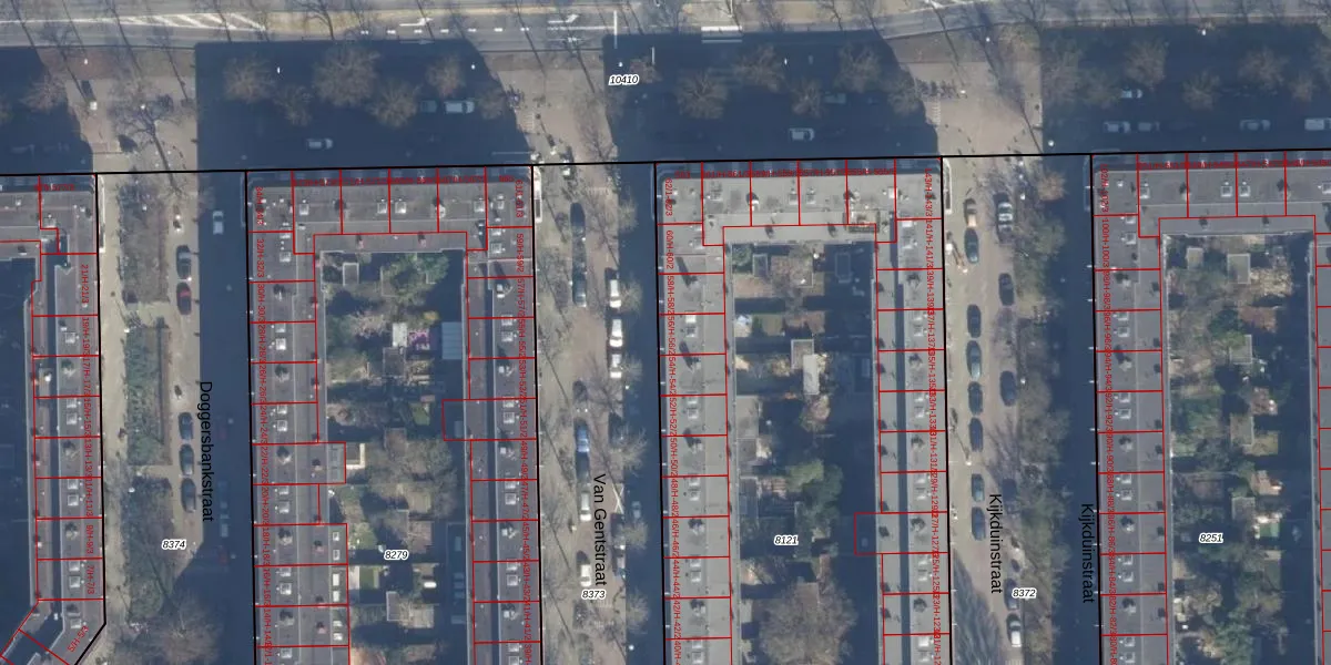 Het perceel waarop Van Gentstraat 56-2 staat heeft een oppervlakte van 5379 m². Dit is een zeer groot perceel. De perceeloppervlakte wordt geregistreerd door het Kadaster. Gedetailleerde informatie over de maten van dit perceel kunt u vinden in het rapport Kadastrale kaart met maatvoering van Van Gentstraat 56-2.