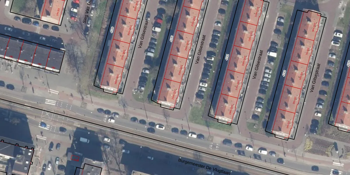 Het perceel waarop Van Gilsestraat 22-H staat heeft een oppervlakte van 1257 m². Dit is een zeer groot perceel. De perceeloppervlakte wordt geregistreerd door het Kadaster. Gedetailleerde informatie over de maten van dit perceel kunt u vinden in het rapport Kadastrale kaart met maatvoering van Van Gilsestraat 22-H.