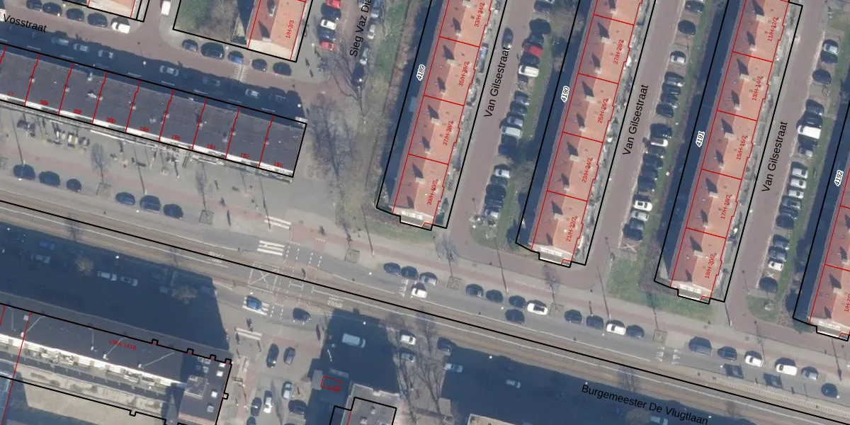 Het perceel waarop Van Gilsestraat 40-1 staat heeft een oppervlakte van 1258 m². Dit is een zeer groot perceel. De perceeloppervlakte wordt geregistreerd door het Kadaster. Gedetailleerde informatie over de maten van dit perceel kunt u vinden in het rapport Kadastrale kaart met maatvoering van Van Gilsestraat 40-1.