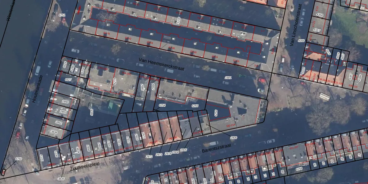Het adres is gelegen op perceel 6255 in de sectie M en de kadastrale gemeente Amsterdam. De kadastrale aanduiding is aldus ASD09-M-6255. De gemiddelde perceelgrootte in Amsterdam is 550,83 m². Dit perceel is kleiner: de perceeloppervlakte bedraagt 436 m². De grootste perceeloppervlakte in de kadastrale gemeente is 14,3 ha. De kleinste oppervlakte bedraagt 1 m². Op het perceel liggen in totaal 11 adressen. In de Basisregistratie Kadaster (BRK) werden de grenzen van het perceel geregistreerd op 30-11-2006.