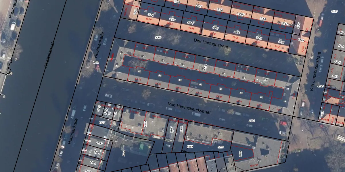 Van Heemskerckstraat 54 is gelegen op kadastraal perceel ASD09M5100. Deze kadastrale aanduiding is uniek en wordt gebruikt door het Kadaster om eigendomsrechten en andere zakelijke rechten vast te leggen. Het perceel maakt onderdeel uit van de kadastrale gemeente Amsterdam.