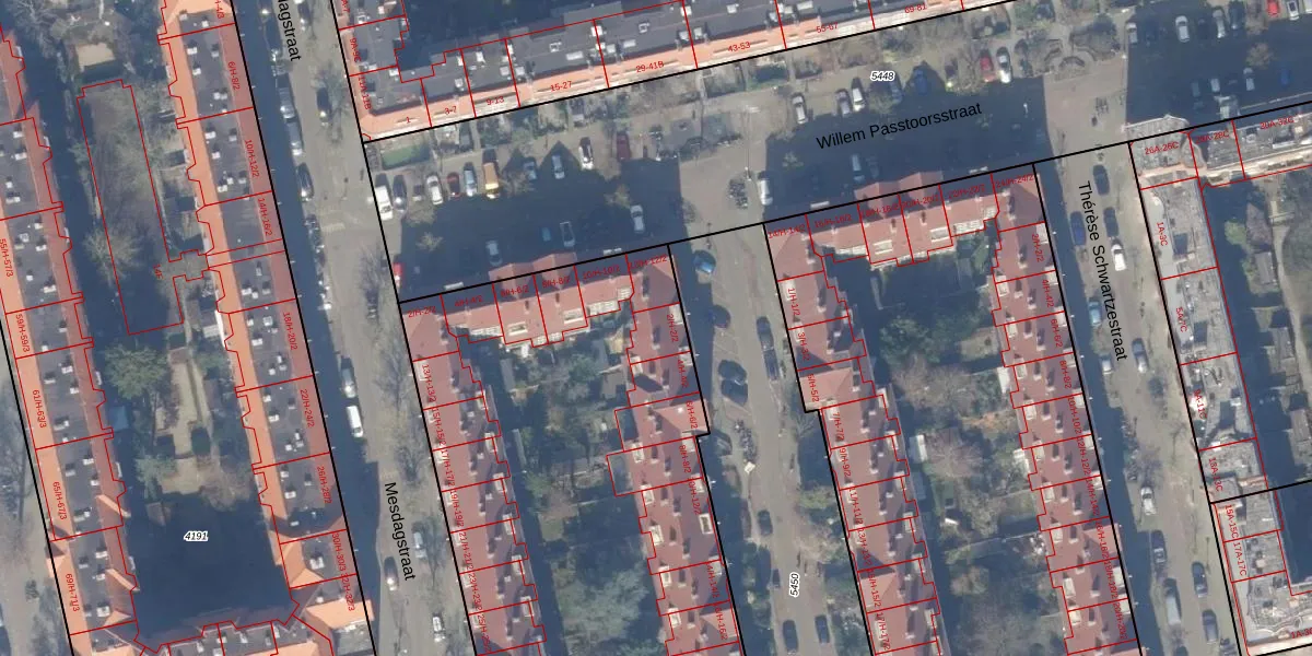 Het adres is gelegen op perceel 5449 in de sectie V en de kadastrale gemeente Amsterdam. De kadastrale aanduiding is aldus ASD18-V-5449. Het perceel is met 5548 m² relatief groot. Het gemiddelde ligt in de kadastrale gemeente Amsterdam op 558,8 m². Het kleinste perceel in de kadastrale gemeente is 0 m² groot. De grootste perceeloppervlakte is 12,5 ha. Op het perceel liggen in totaal 144 adressen. In de Basisregistratie Kadaster (BRK) werden de grenzen van het perceel geregistreerd op 19-11-2019.