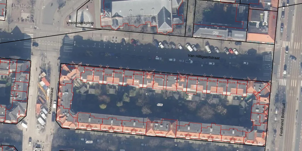 Van Hilligaertstraat 210 is gelegen op kadastraal perceel ASD18V4186. Deze kadastrale aanduiding is uniek en wordt gebruikt door het Kadaster om eigendomsrechten en andere zakelijke rechten vast te leggen. Het perceel maakt onderdeel uit van de kadastrale gemeente Amsterdam.
