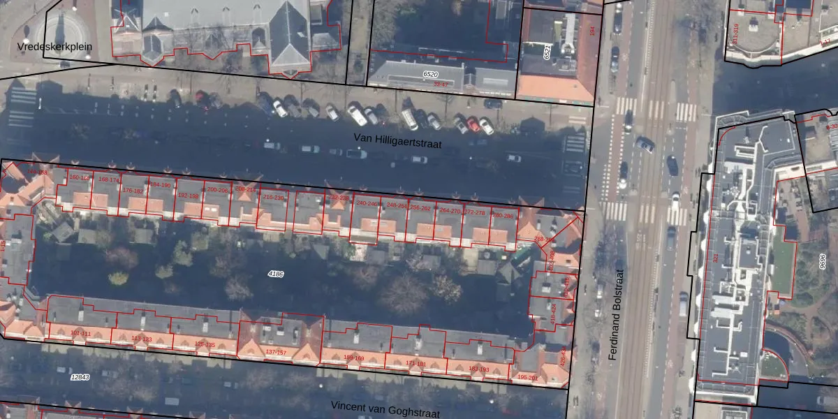 Van Hilligaertstraat 262 is gelegen op kadastraal perceel ASD18V4186. Deze kadastrale aanduiding is uniek en wordt gebruikt door het Kadaster om eigendomsrechten en andere zakelijke rechten vast te leggen. Het perceel maakt onderdeel uit van de kadastrale gemeente Amsterdam.