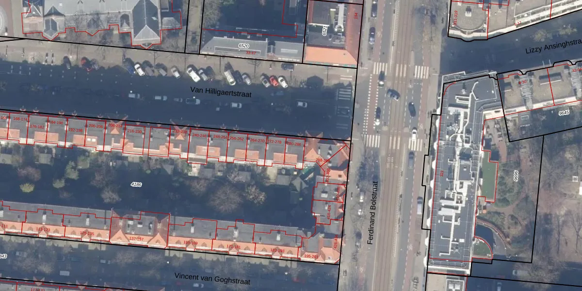 Van Hilligaertstraat 286 is gelegen op kadastraal perceel ASD18V4186. Deze kadastrale aanduiding is uniek en wordt gebruikt door het Kadaster om eigendomsrechten en andere zakelijke rechten vast te leggen. Het perceel maakt onderdeel uit van de kadastrale gemeente Amsterdam.