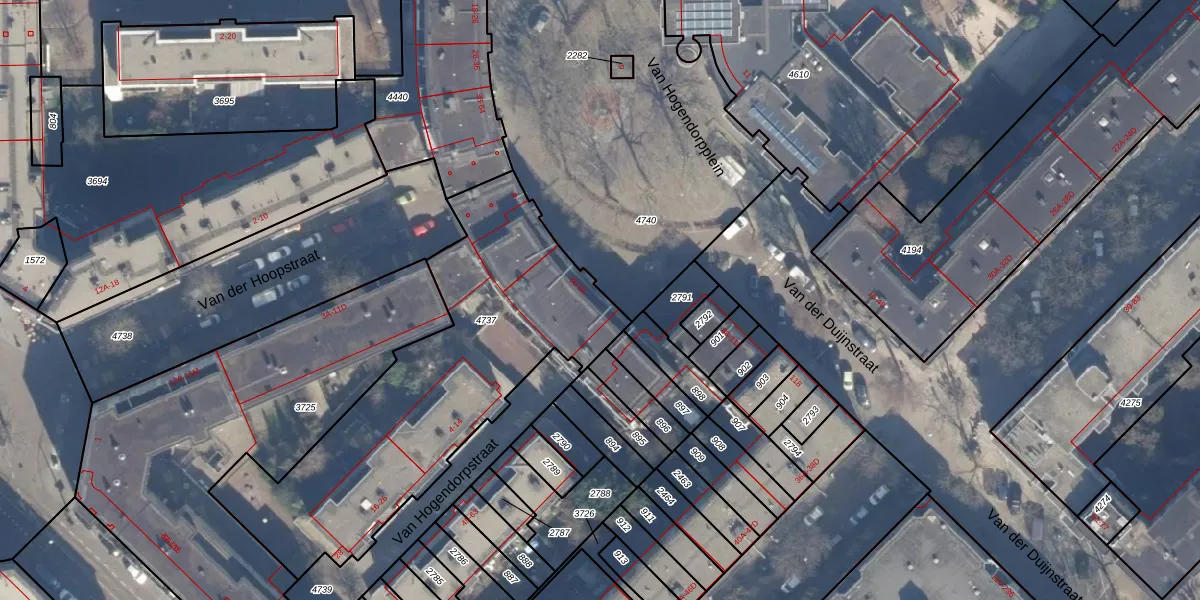 Van Hogendorpplein 84 is gelegen op kadastraal perceel ASD21Y4737. Deze kadastrale aanduiding is uniek en wordt gebruikt door het Kadaster om eigendomsrechten en andere zakelijke rechten vast te leggen. Het perceel maakt onderdeel uit van de kadastrale gemeente Amsterdam.