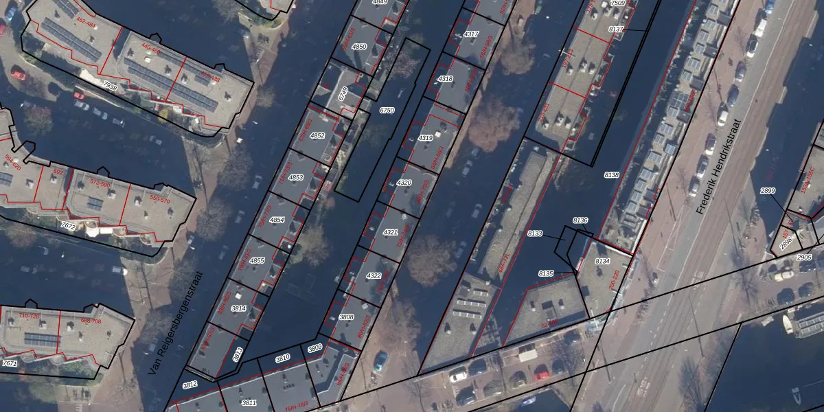 Het adres is gelegen op perceel 4320 in de sectie Q en de kadastrale gemeente Amsterdam. De kadastrale aanduiding is aldus ASD13-Q-4320. Het perceel is 134 m² groot. Dat is kleiner dan de gemiddelde perceeloppervlakte in Amsterdam, dat op 393,94 m² ligt. De grootste perceeloppervlakte in de kadastrale gemeente is 6,2 ha. De kleinste oppervlakte bedraagt 1 m². Er zijn 8 adressen aanwezig op het perceel. De huidige grenzen van het perceel zijn digitaal in de Basisregistratie Kadaster (BRK) geregistreerd op 04-01-2007.