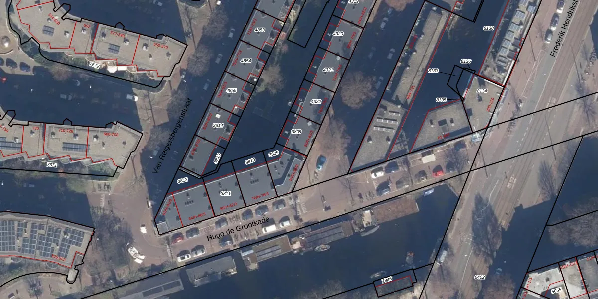 Het adres is gelegen op perceel 3808 in de sectie Q en de kadastrale gemeente Amsterdam. De kadastrale aanduiding is aldus ASD13-Q-3808. Het perceel is 133 m² groot. Dat is kleiner dan de gemiddelde perceeloppervlakte in Amsterdam, dat op 393,94 m² ligt. De grootste perceeloppervlakte in de kadastrale gemeente is 6,2 ha. De kleinste oppervlakte bedraagt 1 m². Op het perceel zijn 8 adressen aanwezig. De huidige grenzen van het perceel zijn digitaal in de Basisregistratie Kadaster (BRK) geregistreerd op 04-01-2007.