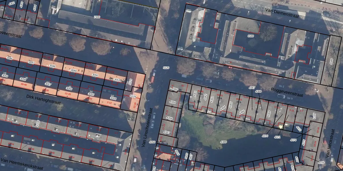 Het perceel waarop Van Linschotenstraat 1 staat heeft een oppervlakte van 77 m². Dit is een klein perceel. De perceeloppervlakte wordt geregistreerd door het Kadaster. Gedetailleerde informatie over de maten van dit perceel kunt u vinden in het rapport Kadastrale kaart met maatvoering van Van Linschotenstraat 1.
