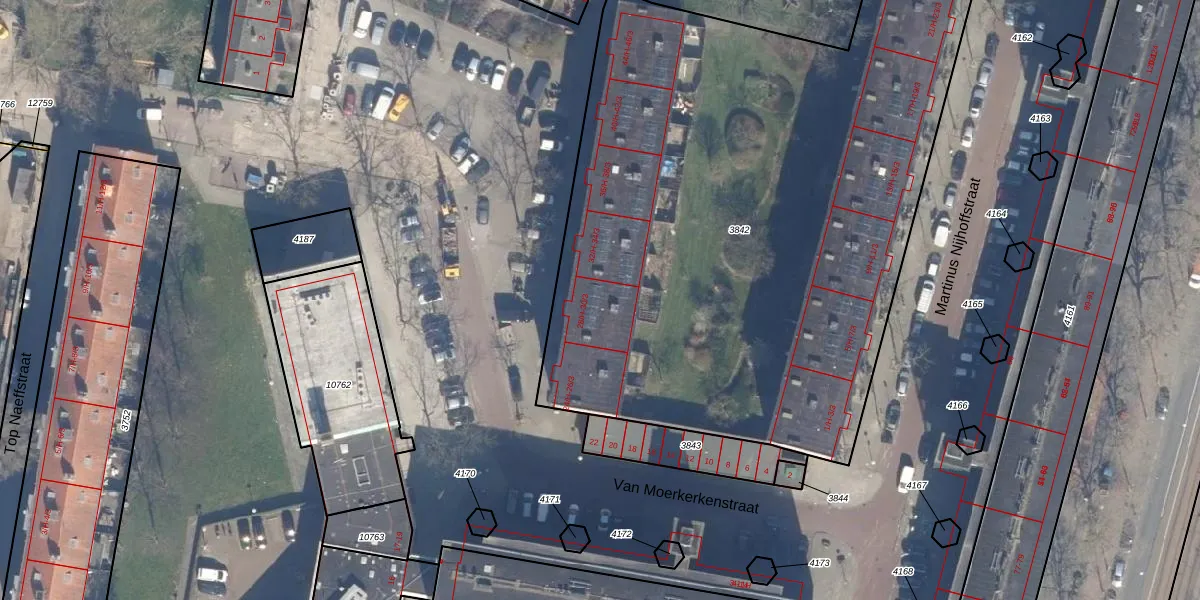 Het perceel waarop Van Moerkerkenstraat 30-2 staat heeft een oppervlakte van 4084 m². Dit is een zeer groot perceel. De perceeloppervlakte wordt geregistreerd door het Kadaster. Gedetailleerde informatie over de maten van dit perceel kunt u vinden in het rapport Kadastrale kaart met maatvoering van Van Moerkerkenstraat 30-2.