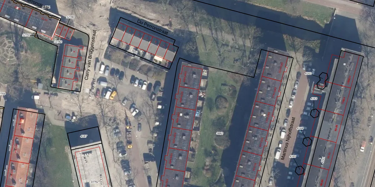 Het perceel waarop Van Moerkerkenstraat 42-3 staat heeft een oppervlakte van 4084 m². Dit is een zeer groot perceel. De perceeloppervlakte wordt geregistreerd door het Kadaster. Gedetailleerde informatie over de maten van dit perceel kunt u vinden in het rapport Kadastrale kaart met maatvoering van Van Moerkerkenstraat 42-3.