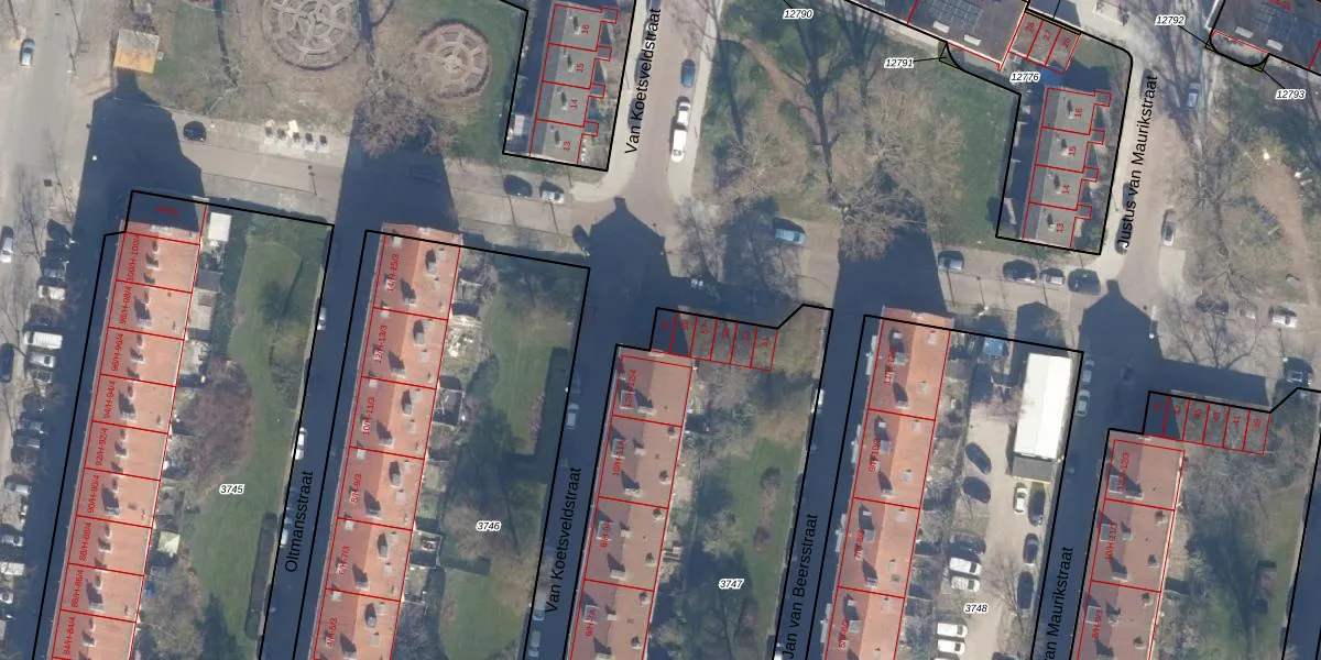 Het perceel waarop Van Moerkerkenstraat 61 staat heeft een oppervlakte van 2615 m². Dit is een zeer groot perceel. De perceeloppervlakte wordt geregistreerd door het Kadaster. Gedetailleerde informatie over de maten van dit perceel kunt u vinden in het rapport Kadastrale kaart met maatvoering van Van Moerkerkenstraat 61.