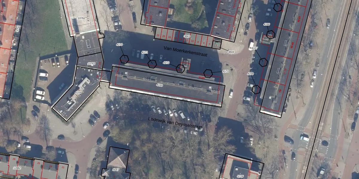 Het perceel waarop Van Moerkerkenstraat 9-B staat heeft een oppervlakte van 777 m². Dit is een groot perceel. De perceeloppervlakte wordt geregistreerd door het Kadaster. Gedetailleerde informatie over de maten van dit perceel kunt u vinden in het rapport Kadastrale kaart met maatvoering van Van Moerkerkenstraat 9-B.