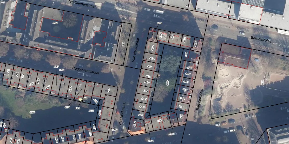 Van Neckstraat 19 is gelegen op kadastraal perceel ASD09M4418. Deze kadastrale aanduiding is uniek en wordt gebruikt door het Kadaster om eigendomsrechten en andere zakelijke rechten vast te leggen. Het perceel maakt onderdeel uit van de kadastrale gemeente Amsterdam.