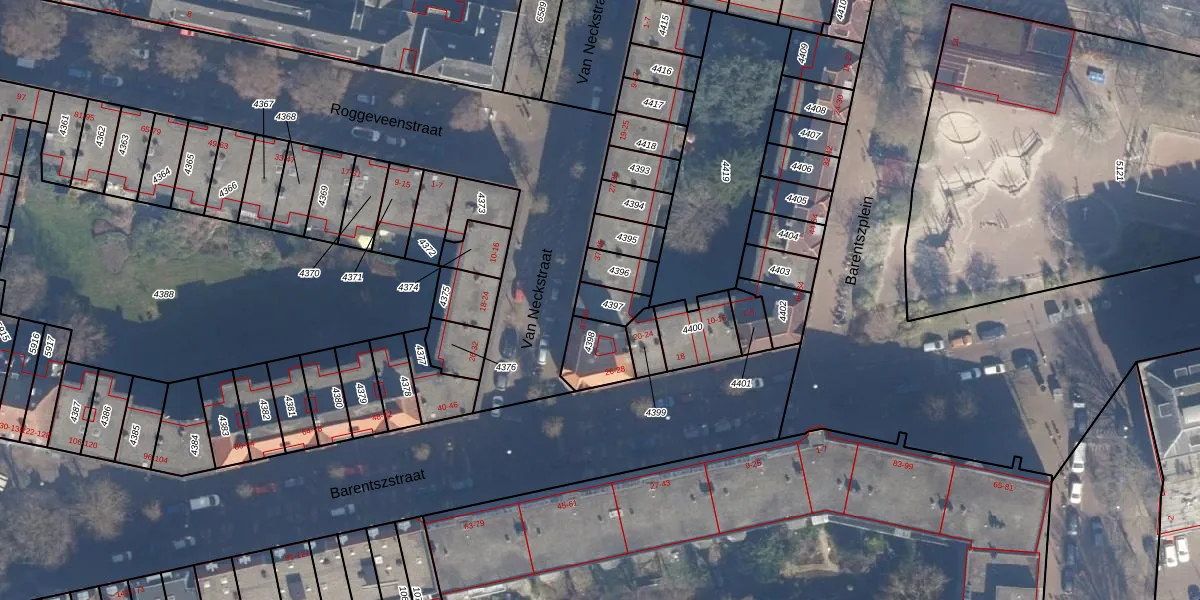 Het perceel waarop Van Neckstraat 47 staat heeft een oppervlakte van 63 m². Dit is een klein perceel. De perceeloppervlakte wordt geregistreerd door het Kadaster. Gedetailleerde informatie over de maten van dit perceel kunt u vinden in het rapport Kadastrale kaart met maatvoering van Van Neckstraat 47.