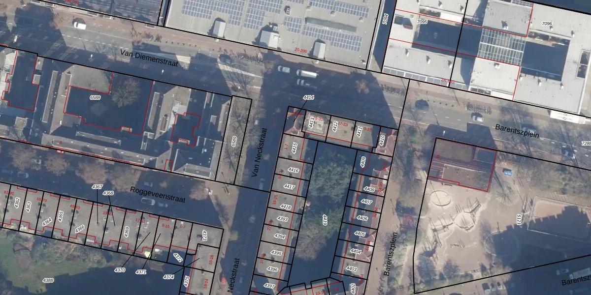 Van Neckstraat 7 is gelegen op kadastraal perceel ASD09M4415. Deze kadastrale aanduiding is uniek en wordt gebruikt door het Kadaster om eigendomsrechten en andere zakelijke rechten vast te leggen. Het perceel maakt onderdeel uit van de kadastrale gemeente Amsterdam.