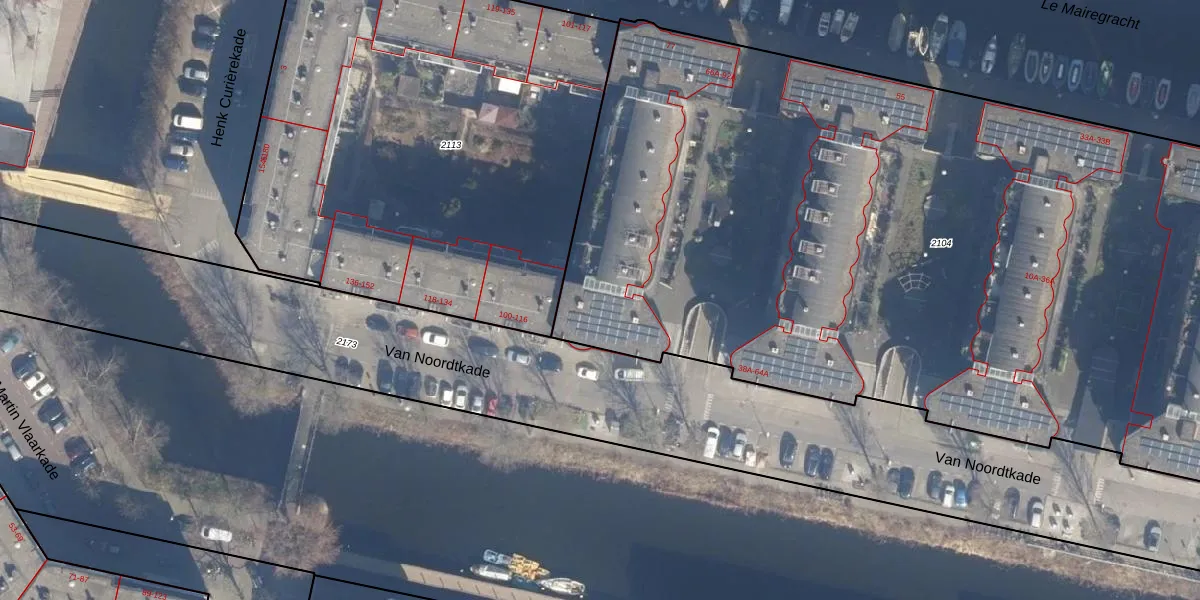 Van Noordtkade 84-A is gelegen op kadastraal perceel ASD20X2104. Deze kadastrale aanduiding is uniek en wordt gebruikt door het Kadaster om eigendomsrechten en andere zakelijke rechten vast te leggen. Het perceel maakt onderdeel uit van de kadastrale gemeente Amsterdam.