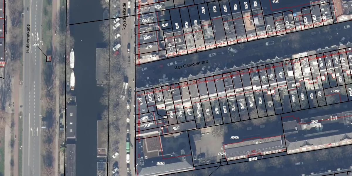 Van Ostadestraat 10-1 is gelegen op kadastraal perceel ASD18V2190. Deze kadastrale aanduiding is uniek en wordt gebruikt door het Kadaster om eigendomsrechten en andere zakelijke rechten vast te leggen. Het perceel maakt onderdeel uit van de kadastrale gemeente Amsterdam.