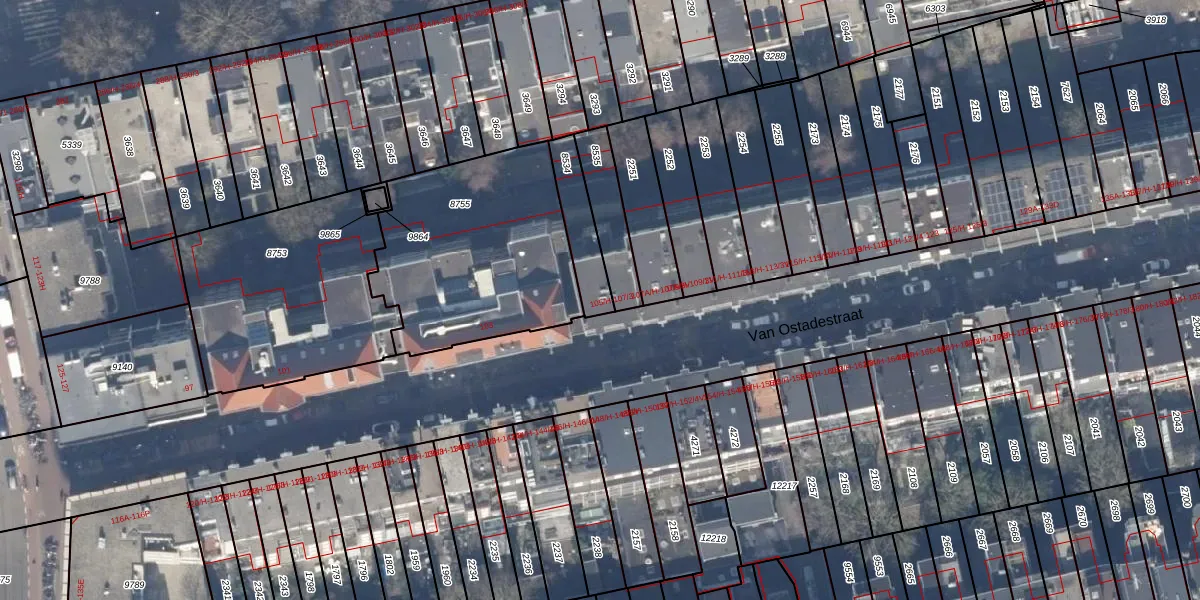 Van Ostadestraat 105-2 is gelegen op kadastraal perceel ASD18V8534. Deze kadastrale aanduiding is uniek en wordt gebruikt door het Kadaster om eigendomsrechten en andere zakelijke rechten vast te leggen. Het perceel maakt onderdeel uit van de kadastrale gemeente Amsterdam.