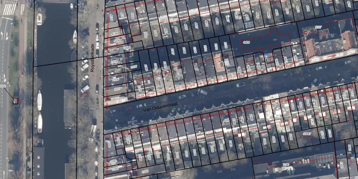 Van Ostadestraat 11-A is gelegen op kadastraal perceel ASD18V2337. Deze kadastrale aanduiding is uniek en wordt gebruikt door het Kadaster om eigendomsrechten en andere zakelijke rechten vast te leggen. Het perceel maakt onderdeel uit van de kadastrale gemeente Amsterdam.