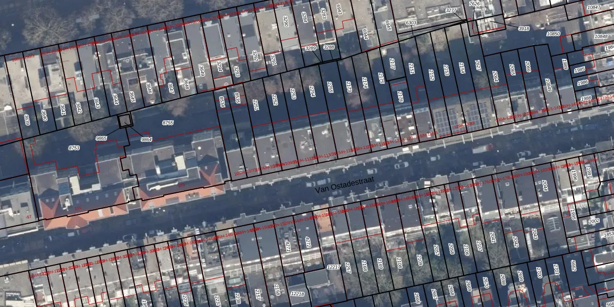 Van Ostadestraat 111-H is gelegen op kadastraal perceel ASD18V2253. Deze kadastrale aanduiding is uniek en wordt gebruikt door het Kadaster om eigendomsrechten en andere zakelijke rechten vast te leggen. Het perceel maakt onderdeel uit van de kadastrale gemeente Amsterdam.