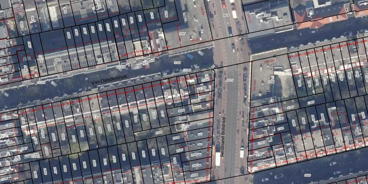 Van Ostadestraat 112-E is gelegen op kadastraal perceel ASD18V1766. Deze kadastrale aanduiding is uniek en wordt gebruikt door het Kadaster om eigendomsrechten en andere zakelijke rechten vast te leggen. Het perceel maakt onderdeel uit van de kadastrale gemeente Amsterdam.