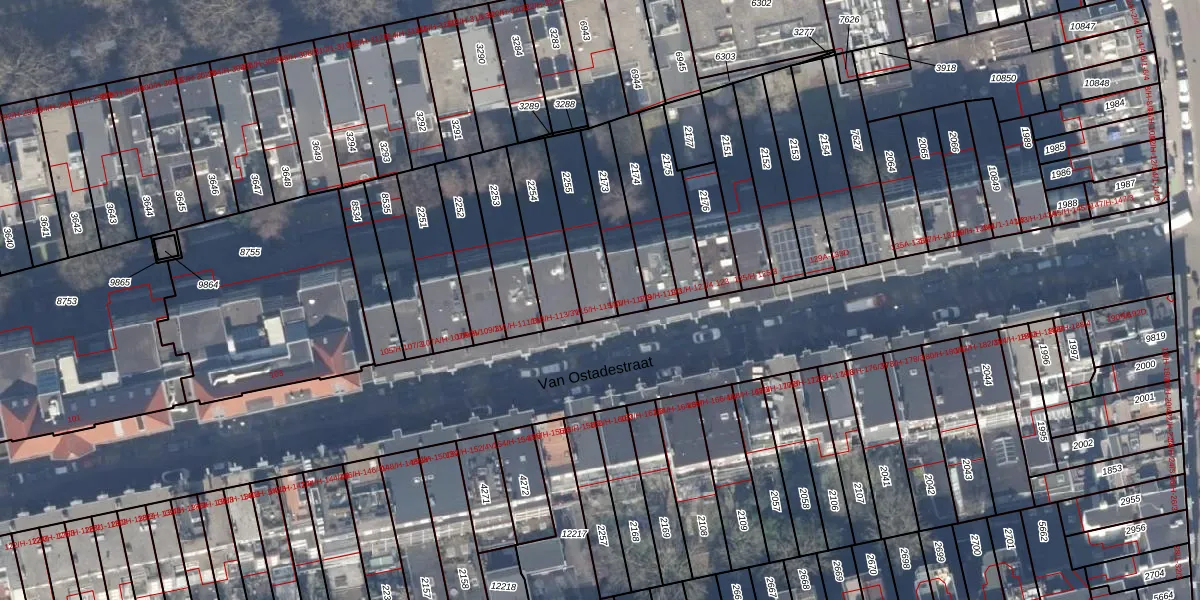 Het perceel waarop Van Ostadestraat 115-2A staat heeft een oppervlakte van 196 m². Dit is een middelgroot perceel. De perceeloppervlakte wordt geregistreerd door het Kadaster. Gedetailleerde informatie over de maten van dit perceel kunt u vinden in het rapport Kadastrale kaart met maatvoering van Van Ostadestraat 115-2A.