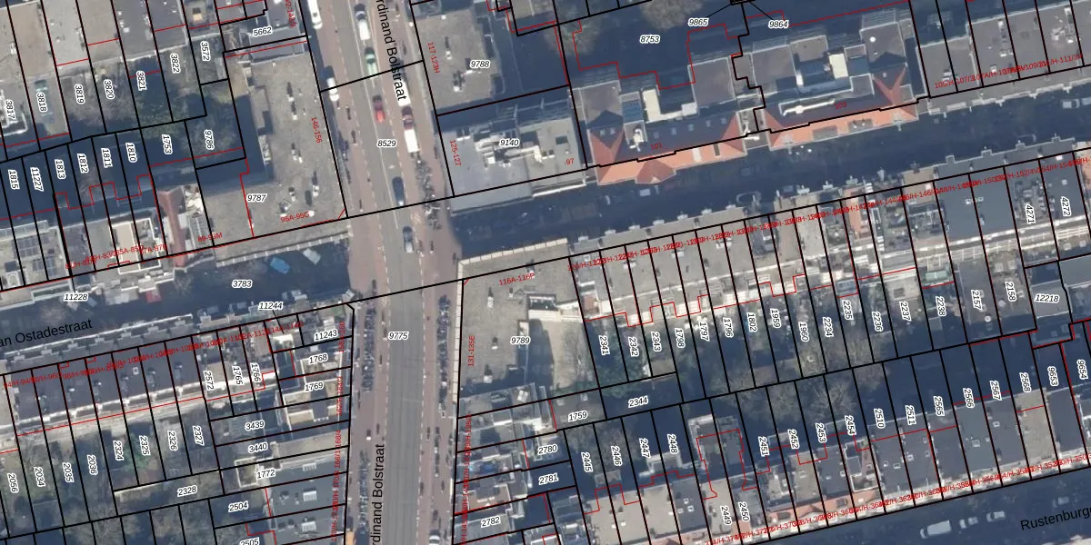 Van Ostadestraat 116-B is gelegen op kadastraal perceel ASD18V9789. Deze kadastrale aanduiding is uniek en wordt gebruikt door het Kadaster om eigendomsrechten en andere zakelijke rechten vast te leggen. Het perceel maakt onderdeel uit van de kadastrale gemeente Amsterdam.