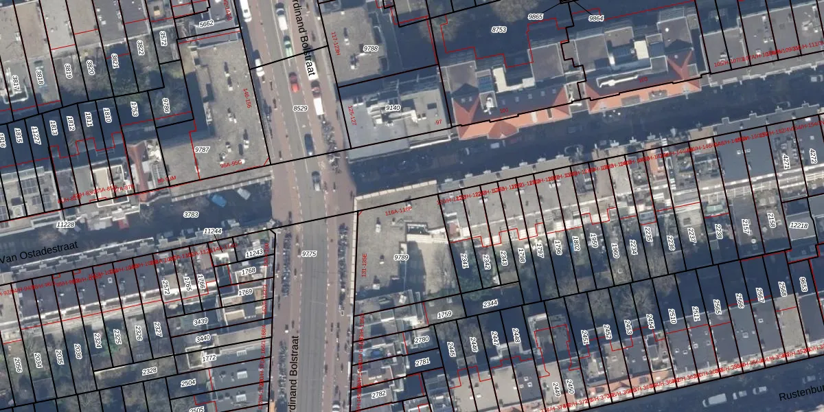 Van Ostadestraat 116-A is gelegen op kadastraal perceel ASD18V9789. Deze kadastrale aanduiding is uniek en wordt gebruikt door het Kadaster om eigendomsrechten en andere zakelijke rechten vast te leggen. Het perceel maakt onderdeel uit van de kadastrale gemeente Amsterdam.