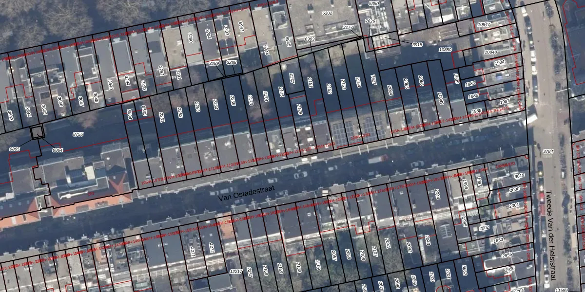 Van Ostadestraat 121-1 is gelegen op kadastraal perceel ASD18V2175. Deze kadastrale aanduiding is uniek en wordt gebruikt door het Kadaster om eigendomsrechten en andere zakelijke rechten vast te leggen. Het perceel maakt onderdeel uit van de kadastrale gemeente Amsterdam.