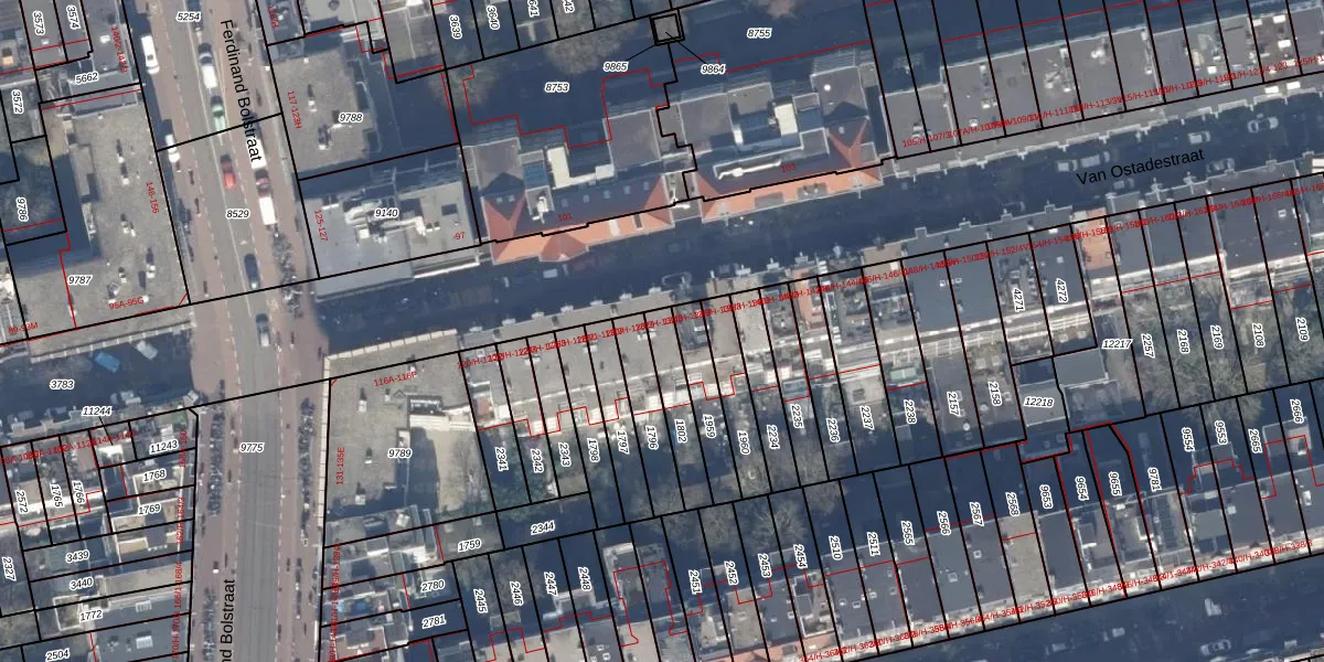 Van Ostadestraat 132-1 is gelegen op kadastraal perceel ASD18V1802. Deze kadastrale aanduiding is uniek en wordt gebruikt door het Kadaster om eigendomsrechten en andere zakelijke rechten vast te leggen. Het perceel maakt onderdeel uit van de kadastrale gemeente Amsterdam.
