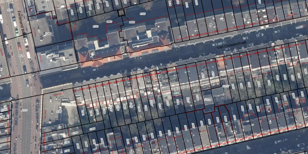 Van Ostadestraat 142-1 is gelegen op kadastraal perceel ASD18V2236. Deze kadastrale aanduiding is uniek en wordt gebruikt door het Kadaster om eigendomsrechten en andere zakelijke rechten vast te leggen. Het perceel maakt onderdeel uit van de kadastrale gemeente Amsterdam.