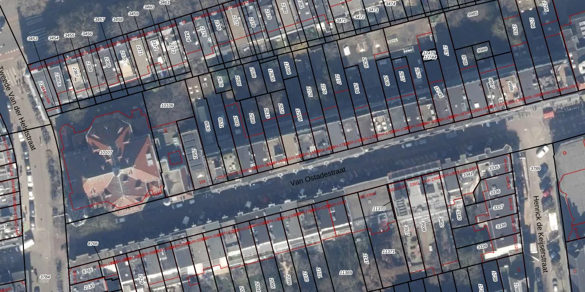 Van Ostadestraat 165-1 is gelegen op kadastraal perceel ASD18V2618. Deze kadastrale aanduiding is uniek en wordt gebruikt door het Kadaster om eigendomsrechten en andere zakelijke rechten vast te leggen. Het perceel maakt onderdeel uit van de kadastrale gemeente Amsterdam.