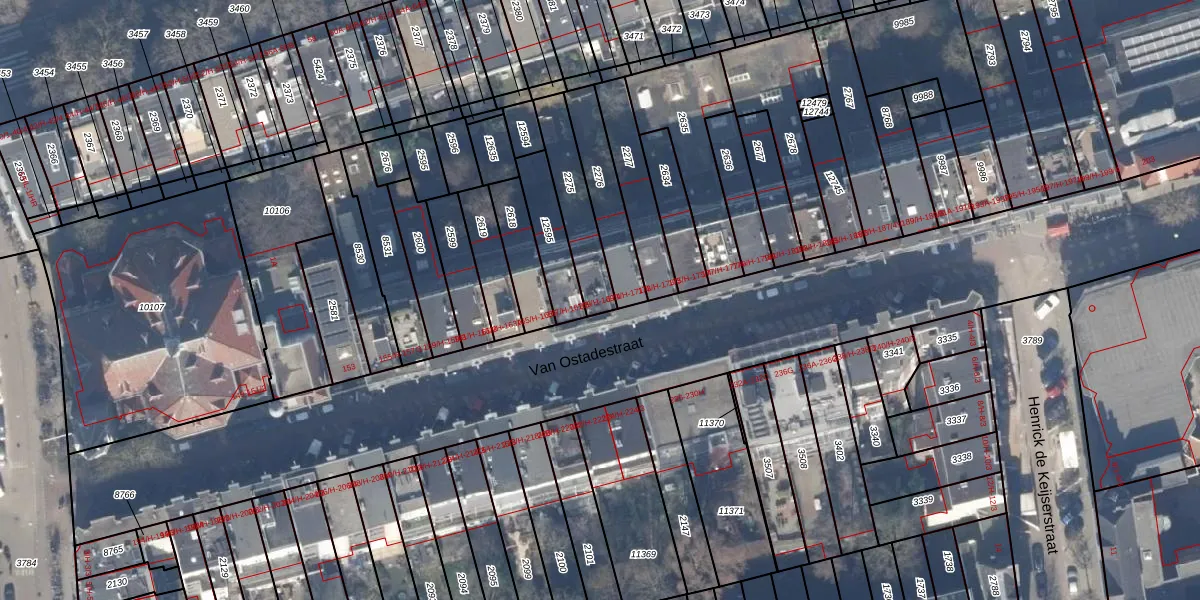 Van Ostadestraat 169-H is gelegen op kadastraal perceel ASD18V2275. Deze kadastrale aanduiding is uniek en wordt gebruikt door het Kadaster om eigendomsrechten en andere zakelijke rechten vast te leggen. Het perceel maakt onderdeel uit van de kadastrale gemeente Amsterdam.