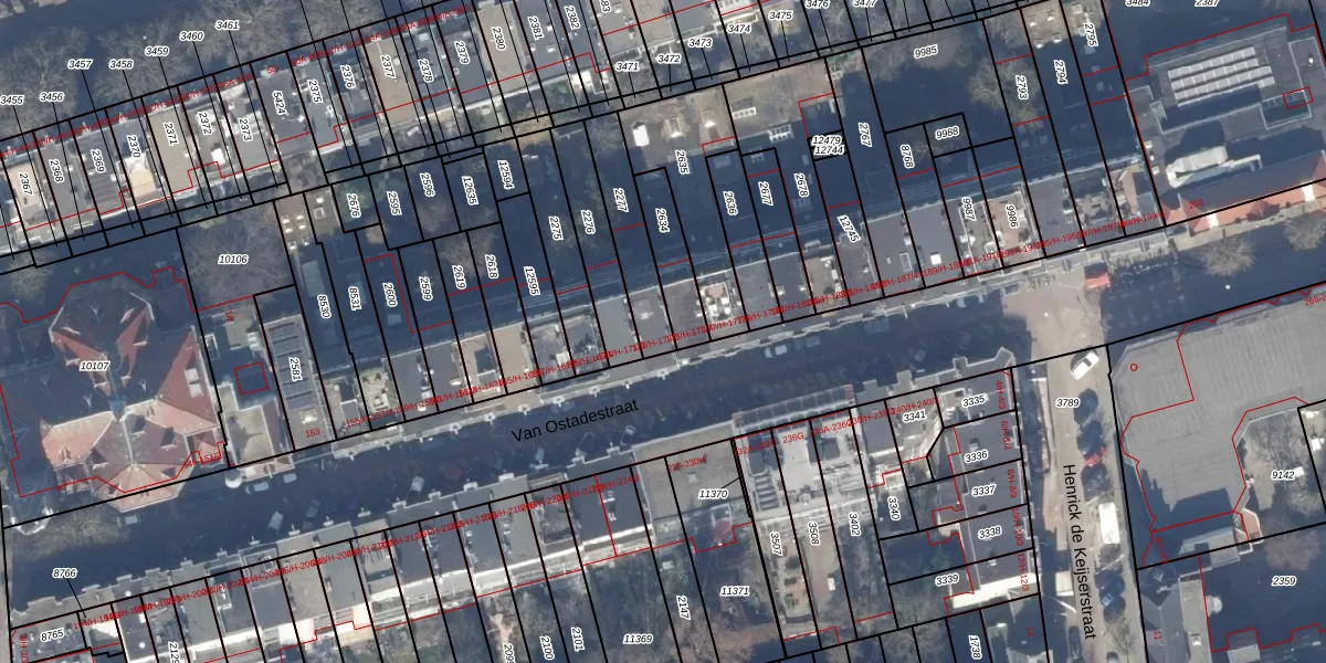 Van Ostadestraat 173-3 is gelegen op kadastraal perceel ASD18V2277. Deze kadastrale aanduiding is uniek en wordt gebruikt door het Kadaster om eigendomsrechten en andere zakelijke rechten vast te leggen. Het perceel maakt onderdeel uit van de kadastrale gemeente Amsterdam.