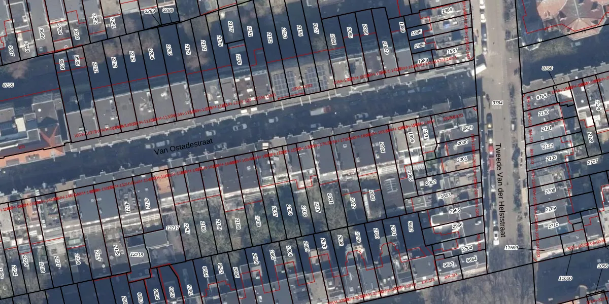 Van Ostadestraat 174-3 is gelegen op kadastraal perceel ASD18V2107. Deze kadastrale aanduiding is uniek en wordt gebruikt door het Kadaster om eigendomsrechten en andere zakelijke rechten vast te leggen. Het perceel maakt onderdeel uit van de kadastrale gemeente Amsterdam.