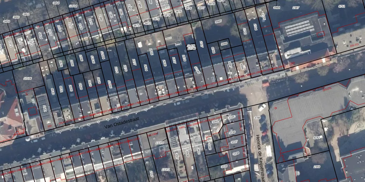 Van Ostadestraat 181-2 is gelegen op kadastraal perceel ASD18V2677. Deze kadastrale aanduiding is uniek en wordt gebruikt door het Kadaster om eigendomsrechten en andere zakelijke rechten vast te leggen. Het perceel maakt onderdeel uit van de kadastrale gemeente Amsterdam.