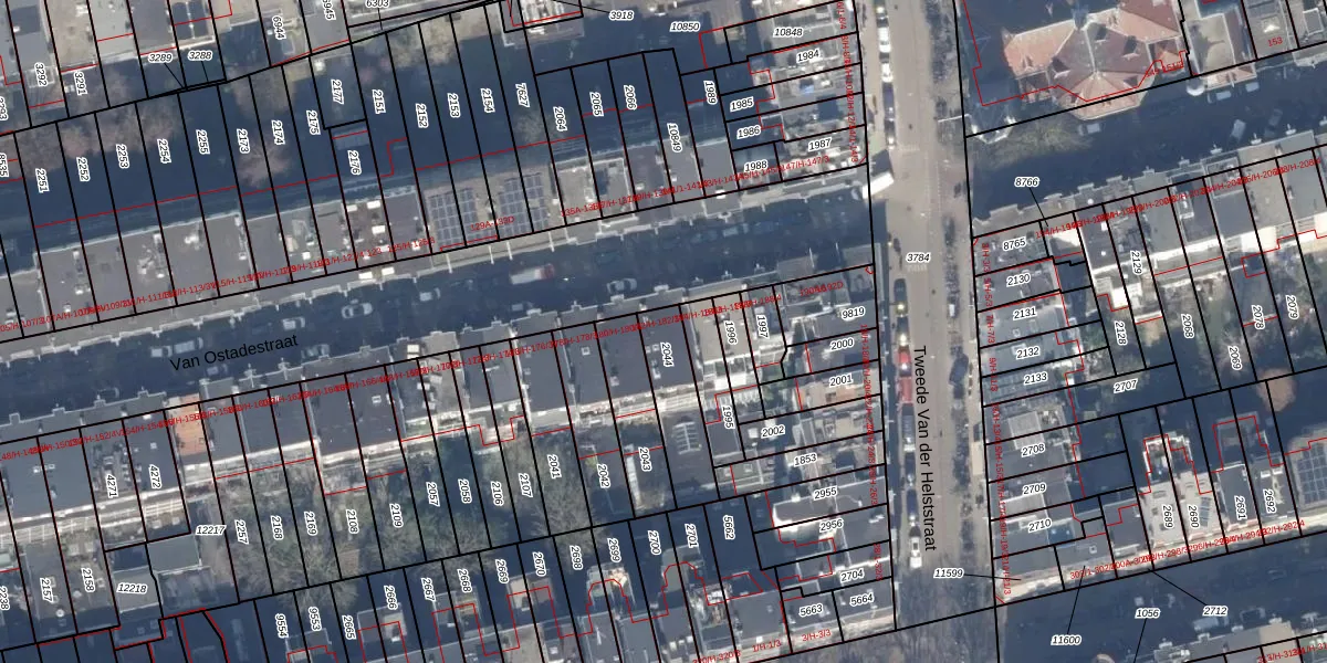 Van Ostadestraat 182-3A is gelegen op kadastraal perceel ASD18V2044. Deze kadastrale aanduiding is uniek en wordt gebruikt door het Kadaster om eigendomsrechten en andere zakelijke rechten vast te leggen. Het perceel maakt onderdeel uit van de kadastrale gemeente Amsterdam.
