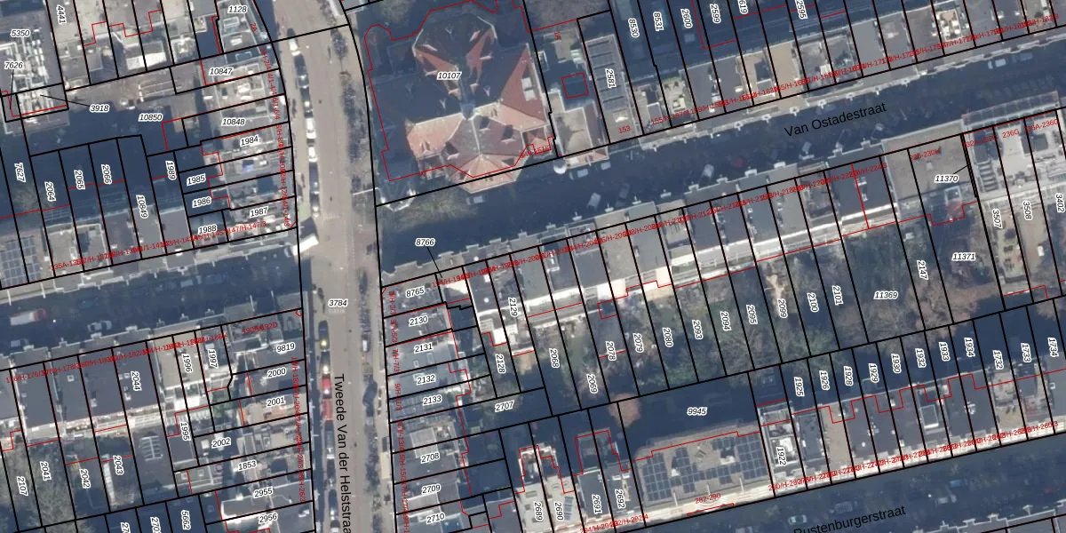 Van Ostadestraat 200-3 is gelegen op kadastraal perceel ASD18V2068. Deze kadastrale aanduiding is uniek en wordt gebruikt door het Kadaster om eigendomsrechten en andere zakelijke rechten vast te leggen. Het perceel maakt onderdeel uit van de kadastrale gemeente Amsterdam.