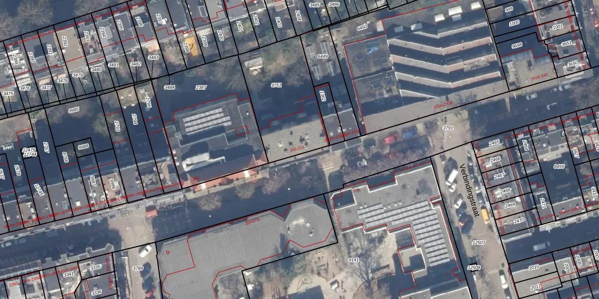 Het adres ligt op het perceel ASD18-V-9751, dat zich in de kadastrale gemeente Amsterdam bevindt. De gemiddelde perceeloppervlakte in de kadastrale gemeente Amsterdam is 558,8 m². Dit perceel is met zijn 817 m² dus groter dan gemiddeld. Het grootste perceel in de kadastrale gemeente is 12,5 ha. Het kleinste perceel heeft een oppervlakte van 0 m². Op het perceel liggen in totaal 14 adressen. De huidige grenzen van het perceel zijn digitaal in de Basisregistratie Kadaster (BRK) geregistreerd op 30-10-2006.