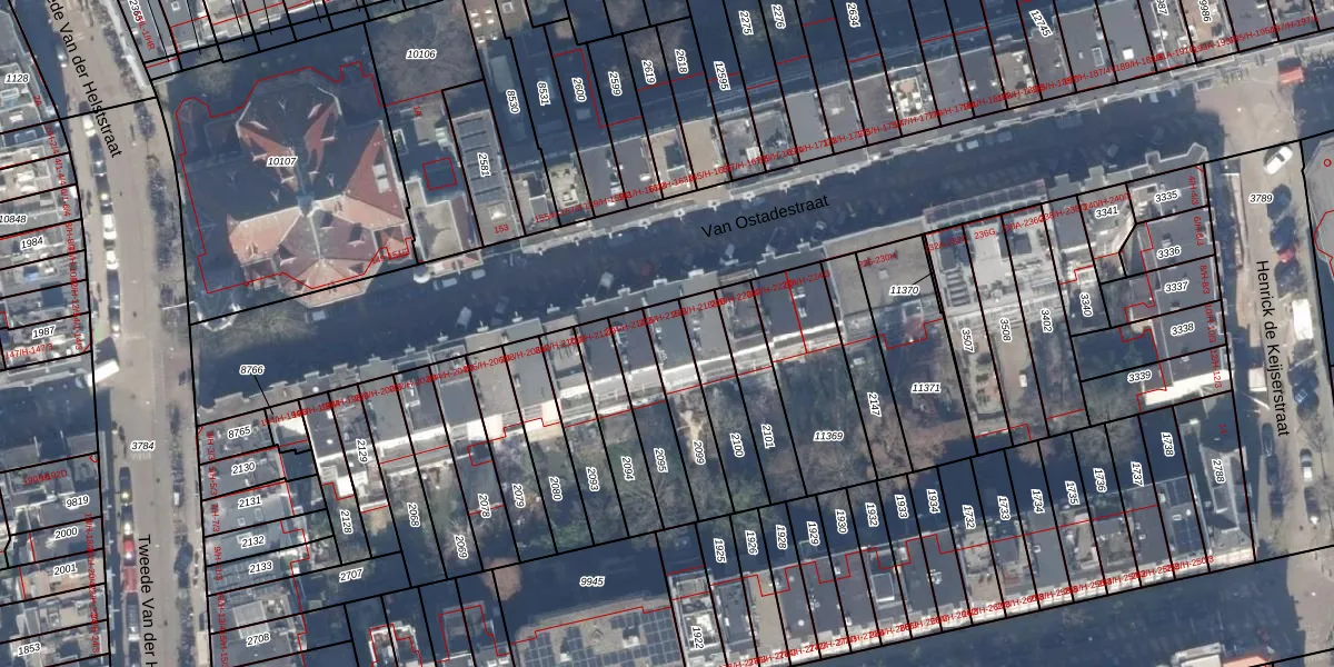 Van Ostadestraat 216-2 is gelegen op kadastraal perceel ASD18V2099. Deze kadastrale aanduiding is uniek en wordt gebruikt door het Kadaster om eigendomsrechten en andere zakelijke rechten vast te leggen. Het perceel maakt onderdeel uit van de kadastrale gemeente Amsterdam.