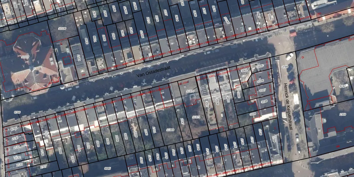 Van Ostadestraat 230-F is gelegen op kadastraal perceel ASD18V2147. Deze kadastrale aanduiding is uniek en wordt gebruikt door het Kadaster om eigendomsrechten en andere zakelijke rechten vast te leggen. Het perceel maakt onderdeel uit van de kadastrale gemeente Amsterdam.