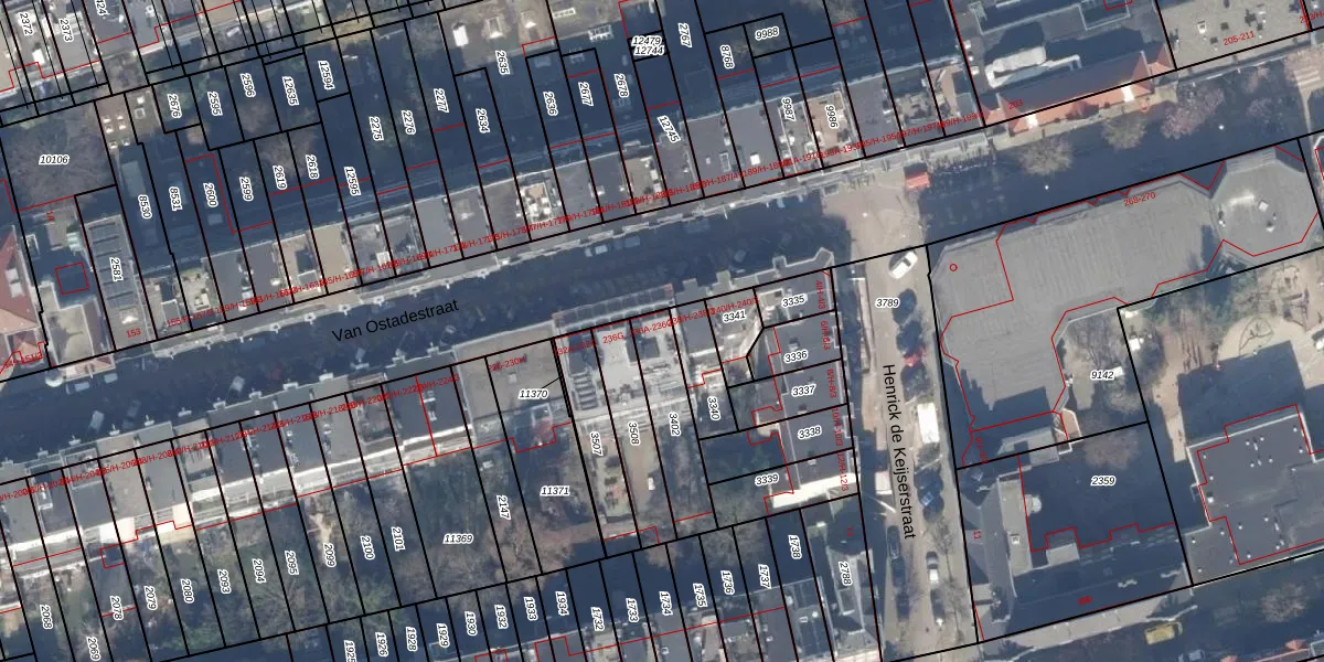 Van Ostadestraat 236-F is gelegen op kadastraal perceel ASD18V3402. Deze kadastrale aanduiding is uniek en wordt gebruikt door het Kadaster om eigendomsrechten en andere zakelijke rechten vast te leggen. Het perceel maakt onderdeel uit van de kadastrale gemeente Amsterdam.