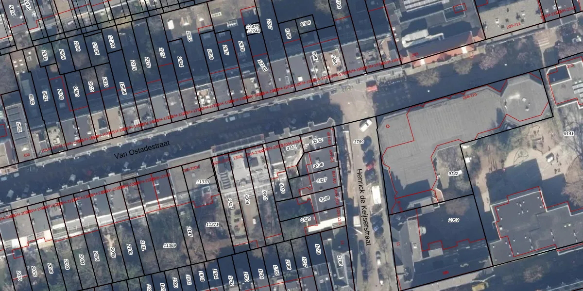 Van Ostadestraat 240-3 is gelegen op kadastraal perceel ASD18V3341. Deze kadastrale aanduiding is uniek en wordt gebruikt door het Kadaster om eigendomsrechten en andere zakelijke rechten vast te leggen. Het perceel maakt onderdeel uit van de kadastrale gemeente Amsterdam.