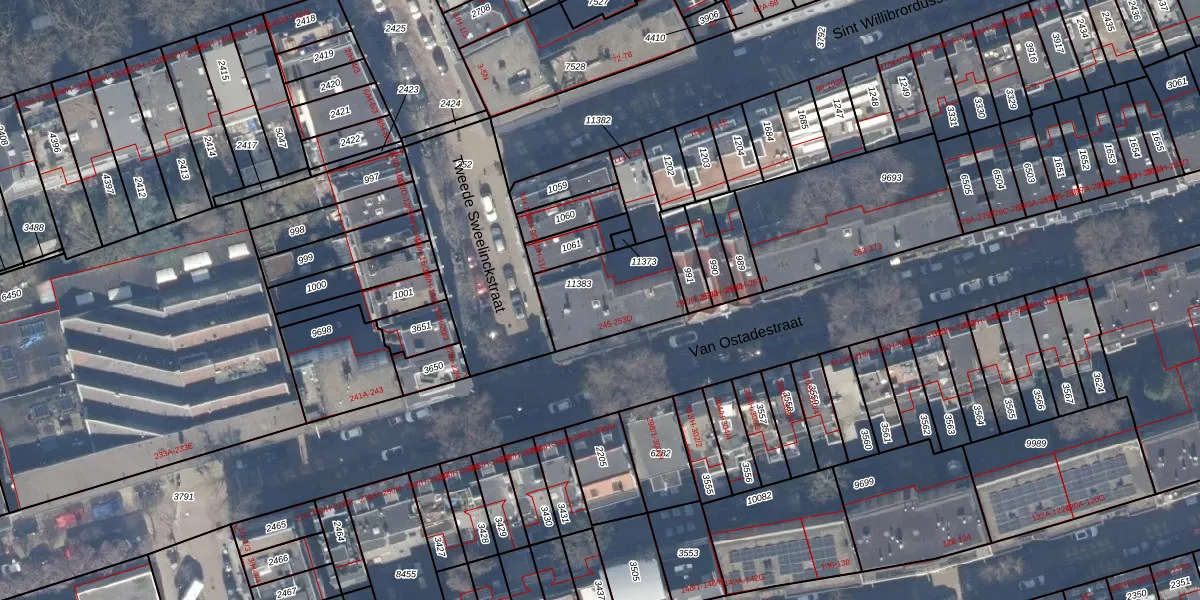 Van Ostadestraat 251-B is gelegen op kadastraal perceel ASD18V11383. Deze kadastrale aanduiding is uniek en wordt gebruikt door het Kadaster om eigendomsrechten en andere zakelijke rechten vast te leggen. Het perceel maakt onderdeel uit van de kadastrale gemeente Amsterdam.