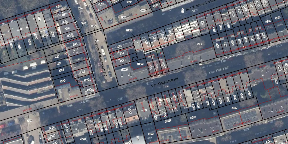 Van Ostadestraat 253-B is gelegen op kadastraal perceel ASD18V11383. Deze kadastrale aanduiding is uniek en wordt gebruikt door het Kadaster om eigendomsrechten en andere zakelijke rechten vast te leggen. Het perceel maakt onderdeel uit van de kadastrale gemeente Amsterdam.