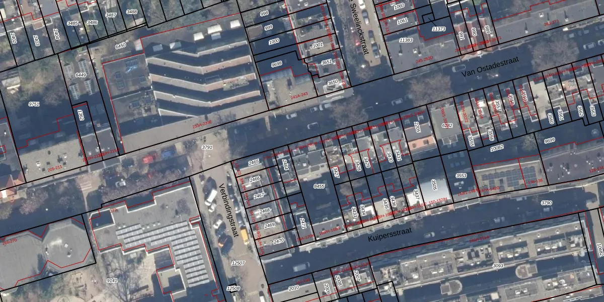 Van Ostadestraat 278-2 is gelegen op kadastraal perceel ASD18V8455. Deze kadastrale aanduiding is uniek en wordt gebruikt door het Kadaster om eigendomsrechten en andere zakelijke rechten vast te leggen. Het perceel maakt onderdeel uit van de kadastrale gemeente Amsterdam.