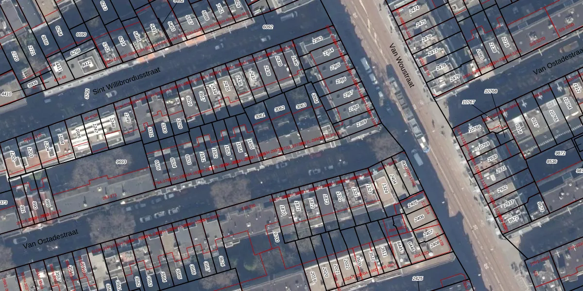Van Ostadestraat 297-2R is gelegen op kadastraal perceel ASD18V3062. Deze kadastrale aanduiding is uniek en wordt gebruikt door het Kadaster om eigendomsrechten en andere zakelijke rechten vast te leggen. Het perceel maakt onderdeel uit van de kadastrale gemeente Amsterdam.