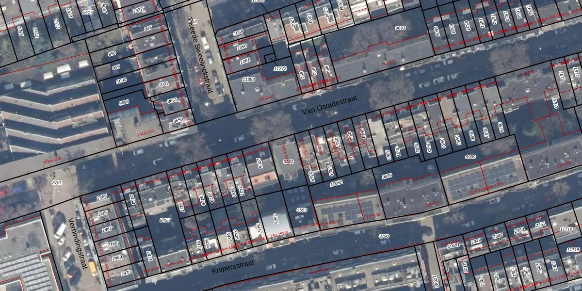 Van Ostadestraat 300-2 is gelegen op kadastraal perceel ASD18V6282. Deze kadastrale aanduiding is uniek en wordt gebruikt door het Kadaster om eigendomsrechten en andere zakelijke rechten vast te leggen. Het perceel maakt onderdeel uit van de kadastrale gemeente Amsterdam.