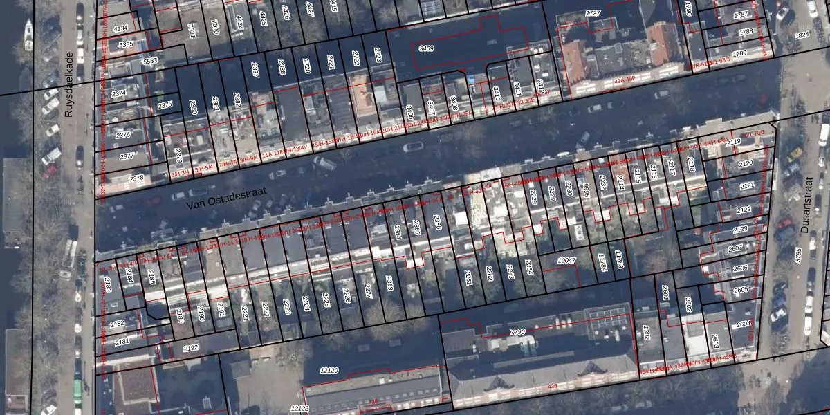 Van Ostadestraat 32-1 is gelegen op kadastraal perceel ASD18V2385. Deze kadastrale aanduiding is uniek en wordt gebruikt door het Kadaster om eigendomsrechten en andere zakelijke rechten vast te leggen. Het perceel maakt onderdeel uit van de kadastrale gemeente Amsterdam.